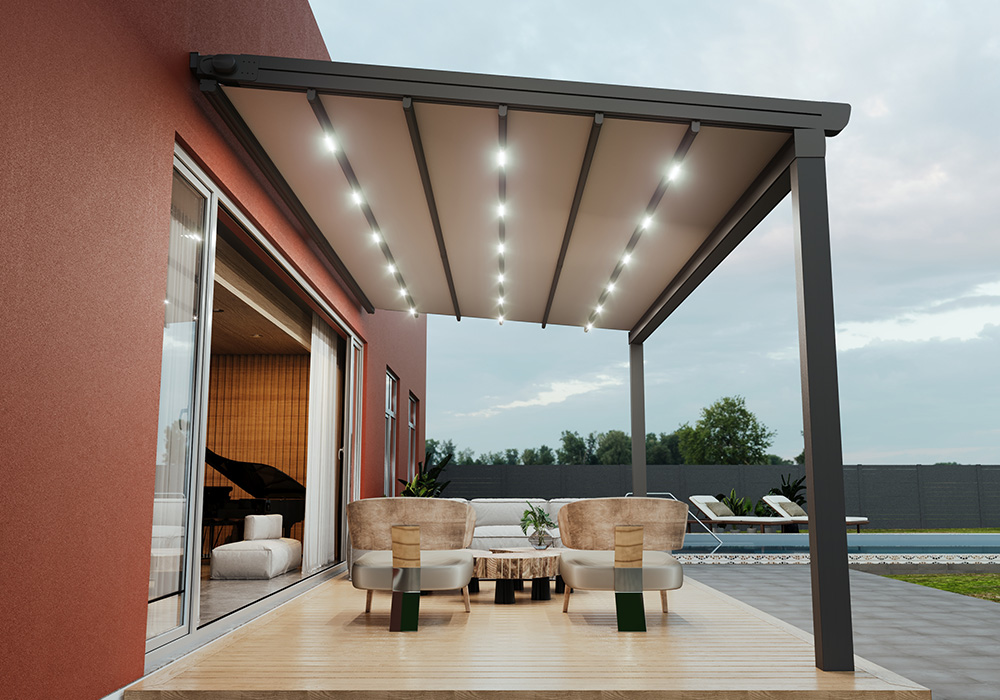 Pergola sistemi se široko koriste na otvorenom za stvaranje toplih i ugodnih prostora za boravak. Zahvaljujući ugrađenom motoru i daljinskom upravljaču, pergolu možete jednostavno otvarati i zatvarati u skladu sa vremenskim prilikama.
